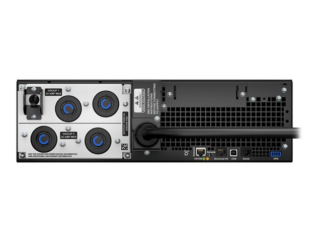 | Gränssnitt | 1 x hantering (Ethernet) - RJ-45 1 x hantering (USB) - 4-stifts USB typ B 1 x EPO (emergency power off) 1 x seriell - RJ-45 |