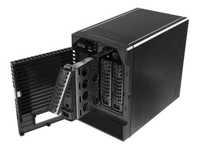 | Egenskaper | Plats för säkerhetslås (kabellås säljs separat), X-RAID2-teknik, Lysdiodindikator, inbyggd kylfläkt, UPS-support, automatisk avstängningsbrytare, VPN-support, one-touch-kopieringsknapp |