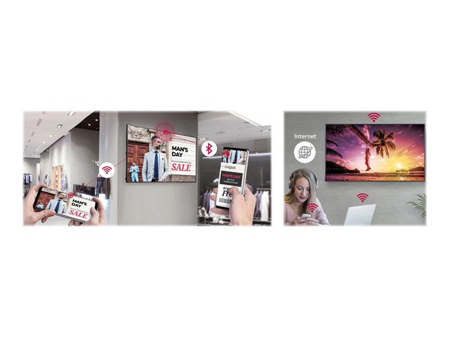 | Kommersiella funktioner | SMART Signage Platform, SNMP-support, Ingen Signal-bild, Local Contents Scheduling, Sync Mode, Crestron Connected Certified, LG SuperSign Media Editor, kompatibel med SuperSign CMS, SuperSign Control+ kompatibel, SuperSign Control compatible, kompatibel med Signage 365 Care, Real Time Communication (webRTC), Local Key Operation, FailOver |