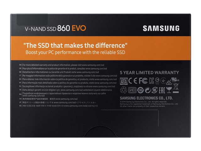 Samsung 860 EVO MZ-76E1T0B - Solid state drive - krypterat - 1 TB - inbyggd - 2.5" - SATA 6Gb/s - buffert: 1 GB - 256 bitars AES - TCG Opal Encryption 2.0 MZ-76E1T0B/EU