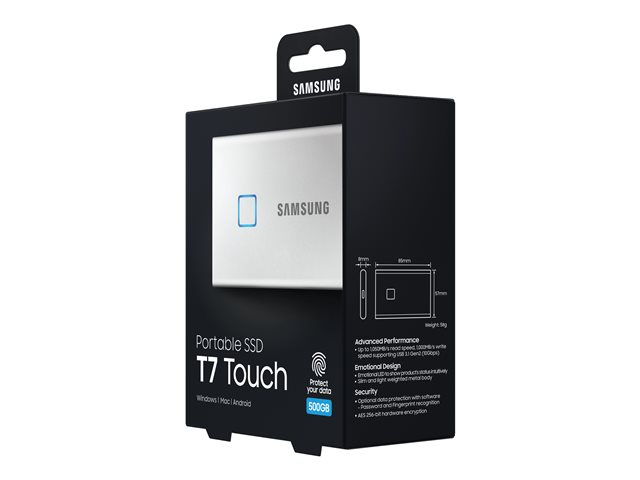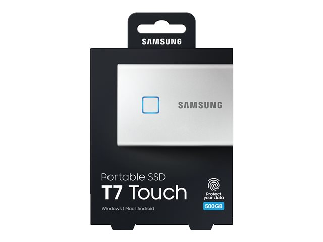 Samsung Portable SSD T7 Touch MU-PC500S - Solid state drive - krypterat - 500 GB - extern (portabel) - USB 3.2 Gen 2 (USB-C kontakt) - 256 bitars AES - silver MU-PC500S/WW
