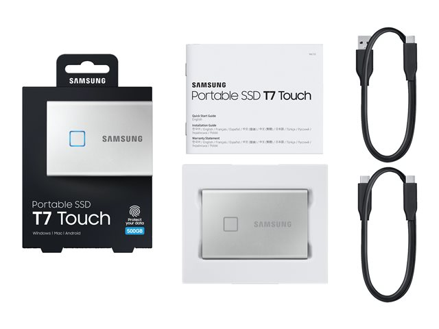 Samsung Portable SSD T7 Touch MU-PC500S - Solid state drive - krypterat - 500 GB - extern (portabel) - USB 3.2 Gen 2 (USB-C kontakt) - 256 bitars AES - silver