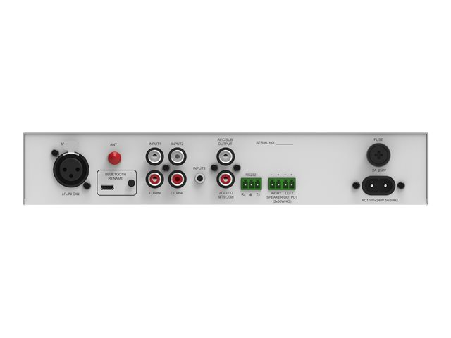 EgenskaperAutomatisk effektsparande, direkt ljuduppspelning med Bluetooth, fantomström, rackmonterbar