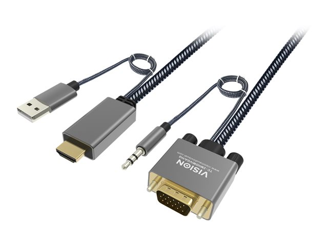 VISION Professional Premium Braided - Kabel för video / ljud - HDMI, USB (endast ström) (hane) till HD-15 (VGA), minijack (hane) - 2 m - braided - aktiv, stöd för 1080p TC 2MHDMIVGA/HQ