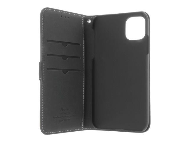 Insmat Exclusive Flip Case - Vikbart fodral för mobiltelefon - genuint läder, polykarbonat - svart - för Apple iPhone 11 Pro Max