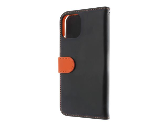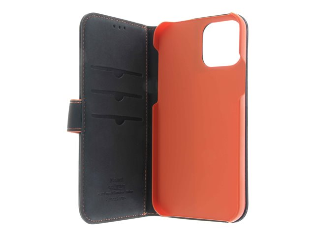 Insmat Exclusive - Vikbart fodral för mobiltelefon - läder, kartong+papper+aluminiumfolie - svart - för Apple iPhone 12 mini 650-2968