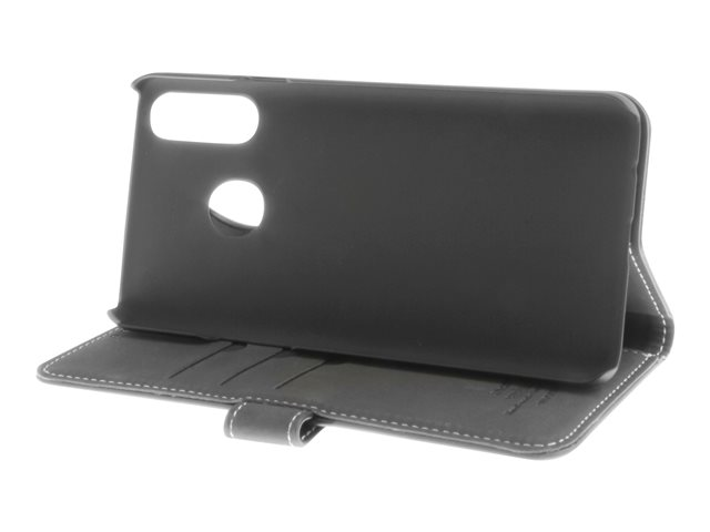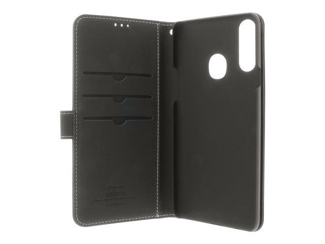 Insmat Exclusive - Vikbart fodral för mobiltelefon - genuint läder, papper, kartong, polykarbonat, aluminiumfolie - svart - för Samsung Galaxy A20s
