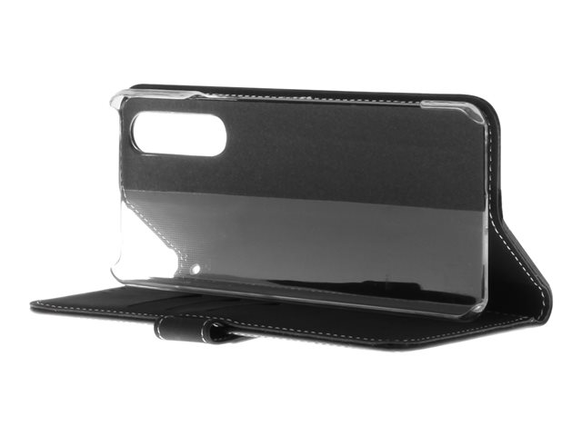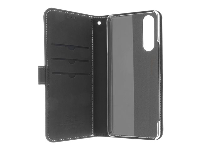 Insmat Exclusive - Vikbart fodral för mobiltelefon - genuint läder, polykarbonat - svart - för Sony XPERIA 5 II