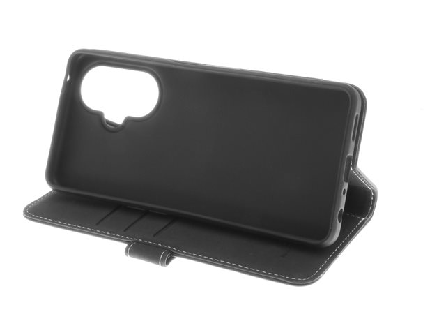 Insmat - Vikbart fodral för mobiltelefon - läder, termoplastisk polyuretan (TPU), kartong+papper+aluminiumfolie, 2 magneter - svart - för OnePlus Nord CE 3 Lite