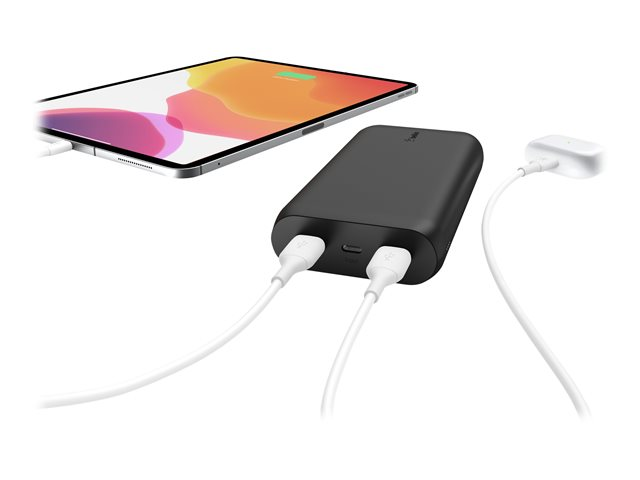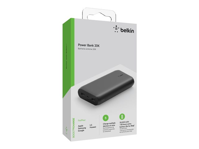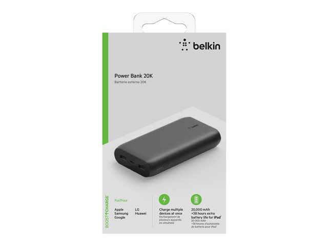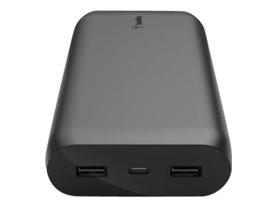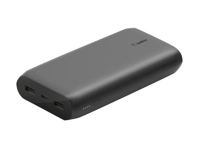 Belkin BOOST CHARGE - Strömförsörjningsbank - 20000 mAh - 3 utdatakontakter (USB, USB-C med strömförsörjning) - på kabel: USB, USB-C - svart BPB003BTBK