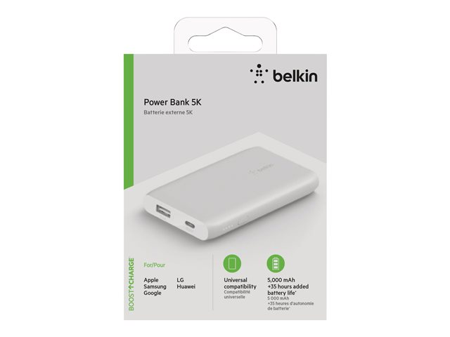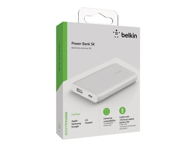 Belkin BOOST CHARGE - Strömförsörjningsbank - 5000 mAh - 2 utdatakontakter (USB, USB-C) - vit BPB004BTWT