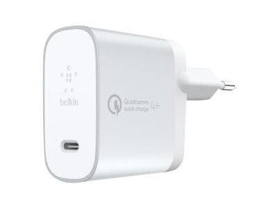 Belkin BOOST CHARGE USB-C Home Charger + Cable with Quick Charge - Strömadapter - 27 Watt - QC 4+ (USB-C) - på kabel: USB-C - silver F7U074VF04-SLV
