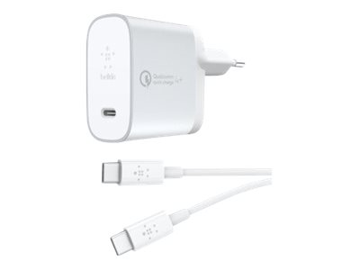 Belkin BOOST CHARGE USB-C Home Charger + Cable with Quick Charge - Strömadapter - 27 Watt - QC 4+ (USB-C) - på kabel: USB-C - silver
