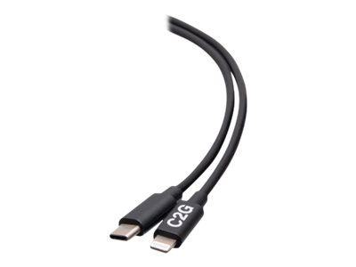 C2G 3ft (0.9m) USB-C Male to Lightning Male Sync and Charging Cable - Black - Lightning-kabel - 24 pin USB-C hane till Lightning hane - 91 cm - svart - USB-strömförsörjning (20W), up to 480 Mbps
