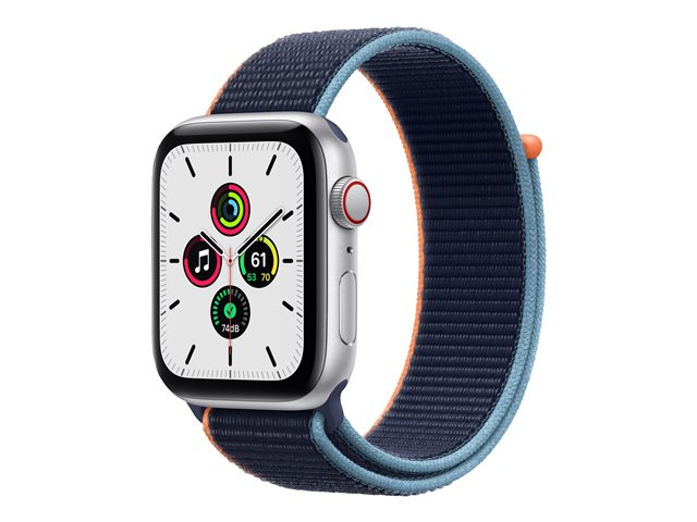 Apple Watch SE (GPS + Cellular) - 44 mm - silveraluminium - smart klocka med sportögla - vävd nylon - djup marin - bandstorlek 145-220 mm - 32 GB - Wi-Fi, Bluetooth - 4G - 36.36 g