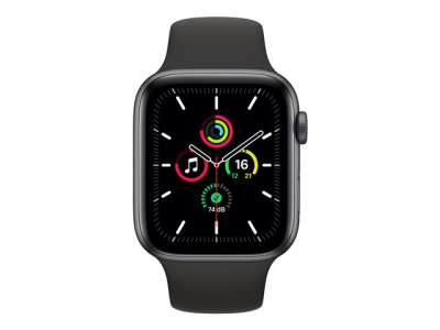 Apple Watch SE (GPS) - 44 mm - rymdgrå aluminium - smart klocka med sportband - fluoroelastomer - svart - bandstorlek 140-210 mm - S/M/L - 32 GB - Wi-Fi, Bluetooth - 36.2 g