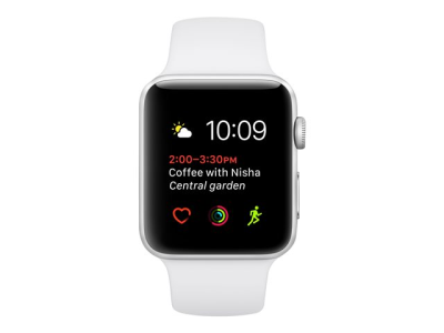 Apple Watch Series 1 - 38 mm - silveraluminium - smart klocka med sportband - fluoroelastomer - vit - bandstorlek 130-200 mm - S/M/L - Wi-Fi, Bluetooth - 25 g MNNG2FS/A