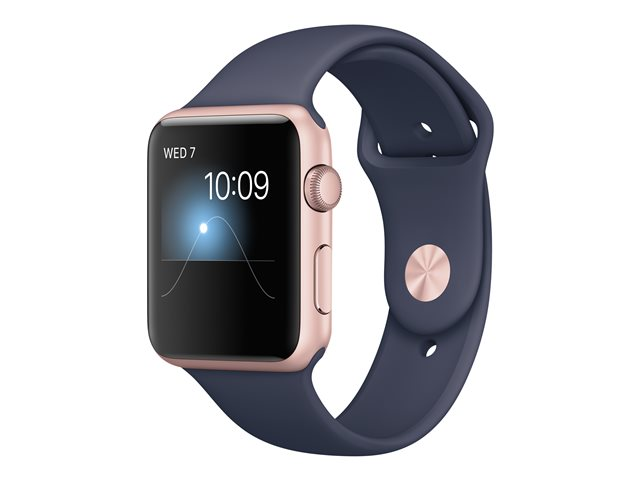 Apple Watch Series 1 - 42 mm - guldrosa aluminium - smart klocka med sportband - fluoroelastomer - midnattsblå - bandstorlek 140-210 mm - S/M/L - Wi-Fi, Bluetooth - 30 g MNNM2FS/A