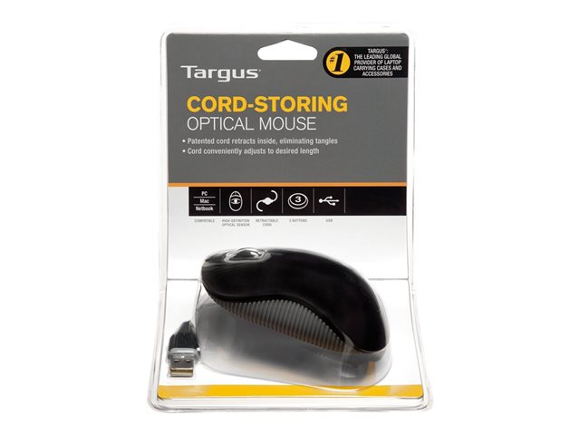 Targus Cord-Storing - Mus - höger- och vänsterhänta - optisk - 3 knappar - kabelansluten - USB - grå, svart