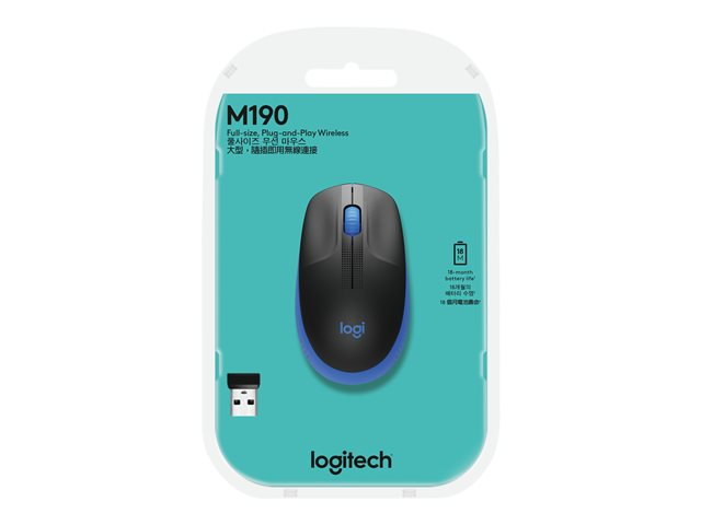 Logitech M190 är en normalstor trådlös mus med en bekväm rundad design som följer medelstora och stora händers naturliga kurva. Detta gör att du kan arbeta trådlöst och röra dig mer fritt. Praktiskt tagit utan tappade anslutningar.