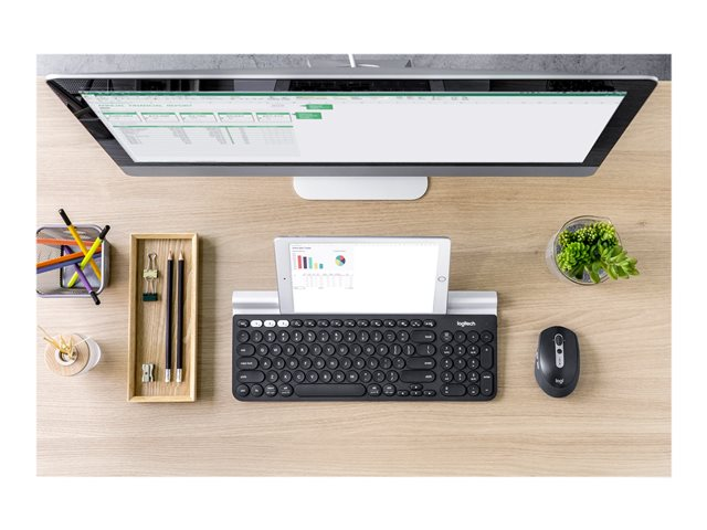 Logitech M590 Silent - Mus - högerhänt - optisk - 7 knappar - trådlös - Bluetooth, 2.4 GHz - trådlös USB-mottagare - grafitton