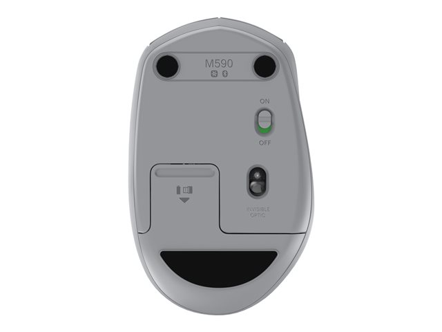 Logitech M590 Silent - Mus - högerhänt - optisk - 7 knappar - trådlös - Bluetooth, 2.4 GHz - trådlös USB-mottagare - mellangrå tonal