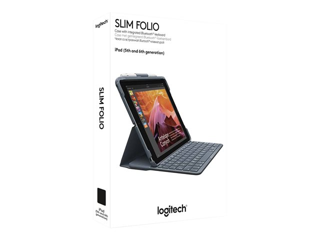 Logitech Slim Folio - Tangentbord och foliefodral - Bluetooth - nordisk - svart - för Apple 9.7-inch iPad (5:e generation, 6:e generation)