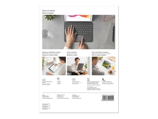 Logitech Combo Touch - Tangentbord och foliefodral - med pekdyna - bakgrundsbelyst - Apple Smart connector - QWERTY - spansk - grafit - för Apple 10.2-inch iPad (7:e generation, 8:e generation, 9:e generation)