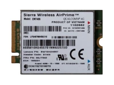 | Designat för | Lenovo ThinkPad A475 20KL (WWAN-uppgraderbar), 20KM (WWAN-uppgraderbar) Lenovo ThinkPad L470 20J4 (WWAN-uppgraderbar), 20J5 (WWAN-uppgraderbar), 20JU (WWAN-uppgraderbar), 20JV (WWAN-uppgraderbar) Lenovo ThinkPad L570 20J8 (WWAN-uppgraderbar), 20J9 (WWAN-uppgraderbar), 20JQ (WWAN-uppgraderbar), 20JR (WWAN-uppgraderbar) Lenovo ThinkPad P50 20EN (WWAN-uppgraderbar), 20EQ (WWAN-uppgraderbar) Lenovo ThinkPad P50s 20FK (WWAN-uppgraderbar), 20FL (WWAN-uppgraderbar) Lenovo ThinkPad P51 20HH (WWAN-uppgraderbar), 20HJ (WWAN-uppgraderbar) Lenovo ThinkPad P51s 20HB (WWAN-uppgraderbar), 20HC (WWAN-uppgraderbar), 20JY (WWAN-uppgraderbar), 20K0 (WWAN-uppgraderbar) Lenovo ThinkPad P70 20ER (WWAN-uppgraderbar), 20ES (WWAN-uppgraderbar) Lenovo ThinkPad P71 20HK (WWAN-uppgraderbar), 20HL (WWAN-uppgraderbar) Lenovo ThinkPad T25 20K7 (WWAN-uppgraderbar) Lenovo ThinkPad T470 20HD (WWAN-uppgraderbar), 20HE (WWAN-uppgraderbar), 20JM (WWAN-uppgraderbar), 20JN (WWAN-uppgraderbar) Lenovo ThinkPad T470p 20J6 (WWAN-uppgraderbar), 20J7 (WWAN-uppgraderbar) Lenovo ThinkPad T470s 20HF (WWAN-uppgraderbar), 20HG (WWAN-uppgraderbar), 20JS (WWAN-uppgraderbar), 20JT (WWAN-uppgraderbar) Lenovo ThinkPad T570 20H9 (WWAN-uppgraderbar), 20HA (WWAN-uppgraderbar), 20JW (WWAN-uppgraderbar), 20JX (WWAN-uppgraderbar) Lenovo ThinkPad X270 20HM (WWAN-uppgraderbar), 20HN (WWAN-uppgraderbar), 20K5 (WWAN-uppgraderbar), 20K6 (WWAN-uppgraderbar) |