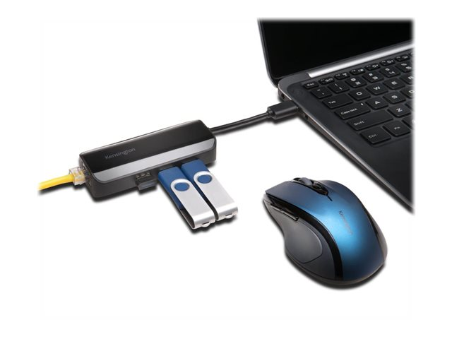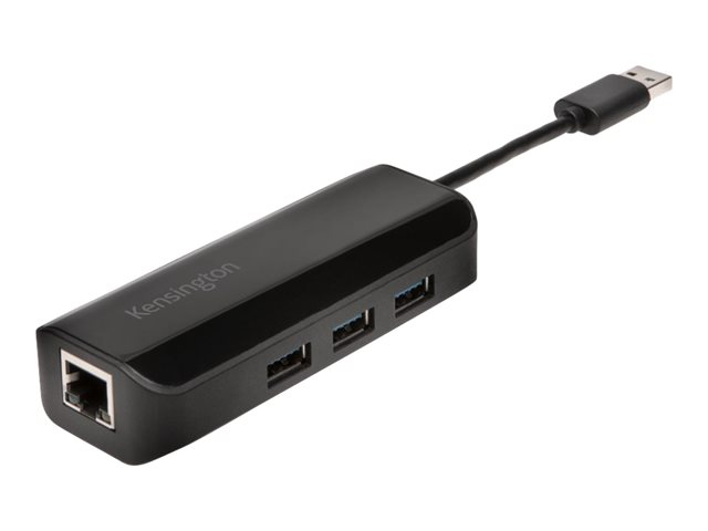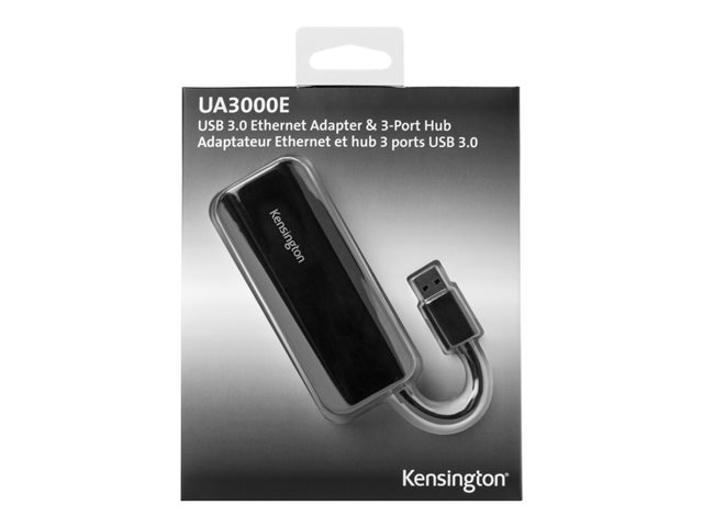 Kensington UA3000E - Nätverksadapter - USB 3.0 - Gigabit Ethernet x 1 + USB 3.0 x 3 - svart