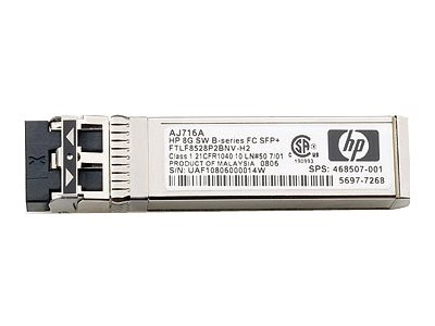 HPE B-Series - SFP+ sändar/mottagarmodul - 8 Gb fiberkanal (SW) - Fibre Channel - begagnat - för Brocade 16Gb/12, 16Gb/24; HPE 8/24, 8/8; StoreFabric SN4000, SN6500, SN8600B 4-slot AJ716BR