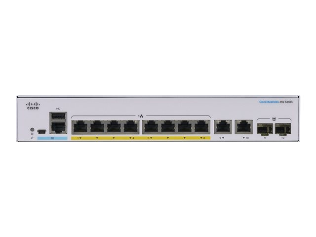 Cisco Business 350 Series CBS350-8P-E-2G - Switch - L3 - Administrerad - 8 x 10/100/1000 (PoE+) + 2 x kombinations-SFP - rackmonterbar - PoE+ (67 W) CBS350-8P-E-2G-EU