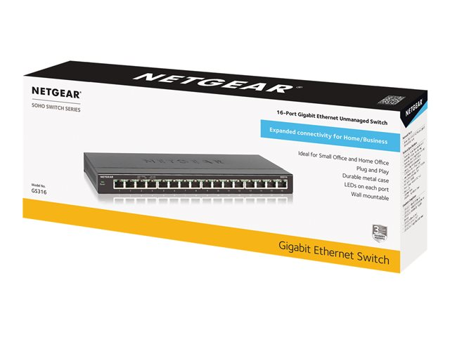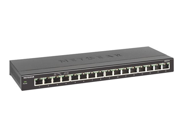 NETGEAR SOHO Gigabit Ethernet Switch GS316 - Switch - ohanterad - 16 x 10/100/1000 - skrivbordsmodell, väggmonterbar