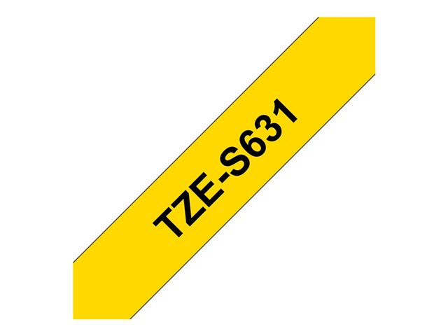 Brother TZe-S631 - Extrastark häftning - svart på gult - Rulle (1,2 cm x 8 m) 1 kassett(er) bandlaminat - för Brother PT-D210, D600, H110; P-Touch PT-1005, D200, D450, D800, E550, H110, P300, P900
