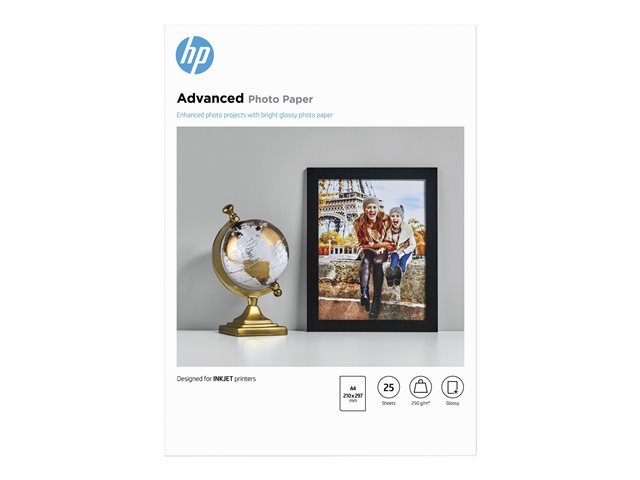 HP Advanced Glossy Photo Paper - Blank - A4 (210 x 297 mm) - 250 g/m² - 25 ark fotopapper - för ENVY 50XX; Officejet 52XX, 80XX; Photosmart B110, Wireless B110