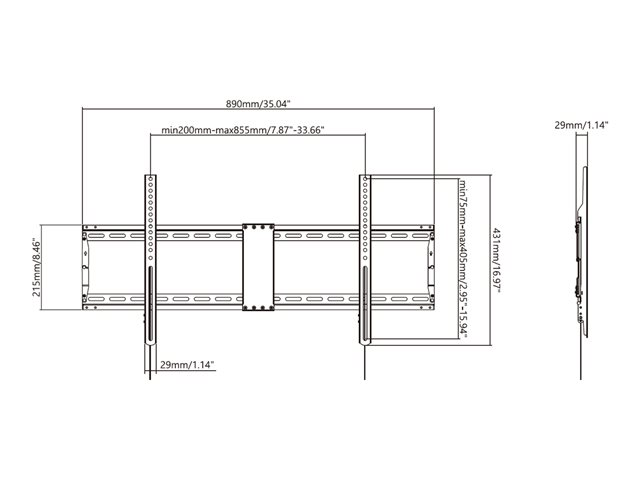 | VESA-infästningsgränssnitt | 200 x 200 mm, 300 x 300 mm, 400 x 200 mm, 400 x 400 mm, 600 x 400 mm, 700 x 400 mm, 800 x 400 mm |