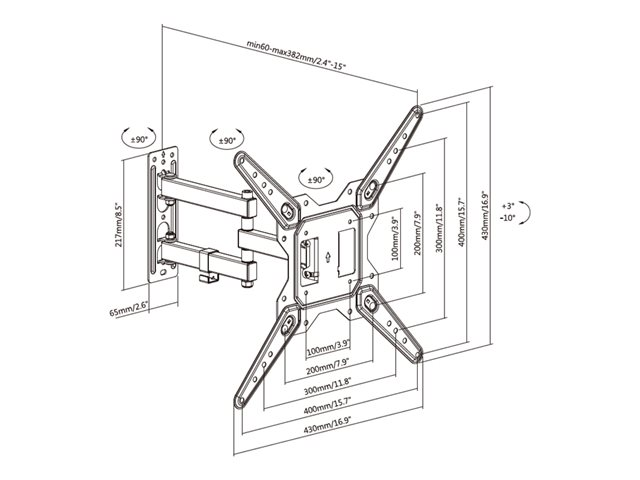 Vision VFM-WA4X4/3 - Monteringssats (väggfäste) - dubbelledad - för LCD-display - kallvalsat stål - svart - skärmstorlek: 37"-60"