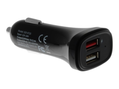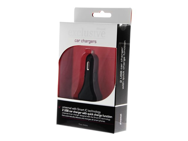 Insmat SPIRAL Series Dual - Strömadapter för bil - 30 Watt - 3 A - QC 3.0 - 2 utdatakontakter (USB) - svart