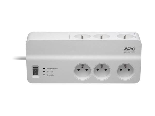 APC SurgeArrest Essential - Överspänningsskydd - AC 230 V - 2300 Watt - utgångskontakter: 6 - 2 m sladd - Belgien, Frankrike - vit