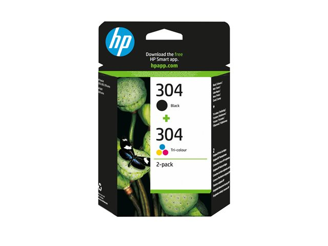 HP 304 - 2-pack - svartfärgad, färg (cyan, magenta, gul) - original - bläckpatron - för AMP 130; Deskjet 26XX, 37XX; ENVY 50XX