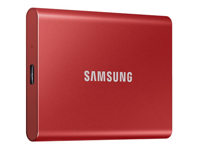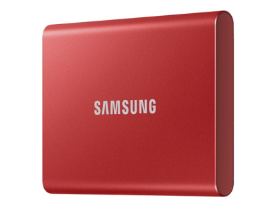 Samsung T7 MU-PC1T0R - SSD - krypterat - 1 TB - extern (portabel) - USB 3.2 Gen 2 (USB-C kontakt) - 256 bitars AES - röd-metallic