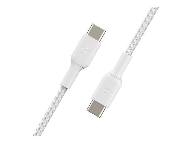 Belkin BoostCharge - USB-kabel - 24 pin USB-C (hane) till 24 pin USB-C (hane) - USB 2.0 - 3 A - 1 m - USB Power Delivery (60W) - vit (paket om 2)