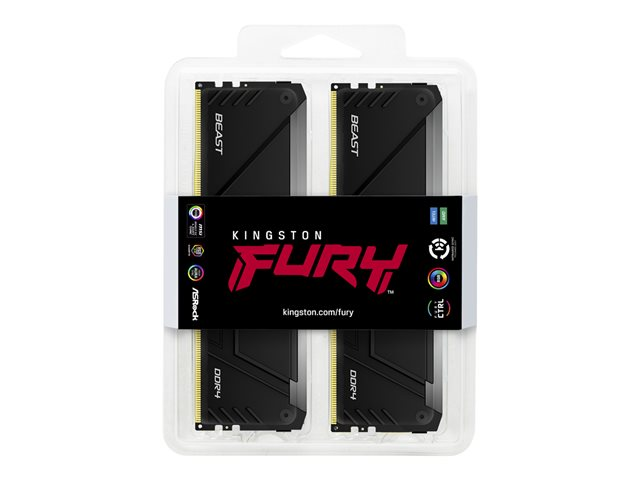 Kingston FURY Beast RGB - DDR4 - sats - 64 GB: 2 x 32 GB - DIMM 288-pin - 3200 MT/s / PC4-25600 - CL16 - 1.35 V - ej buffrad - icke ECC - svart KF432C16BB2AK2/64