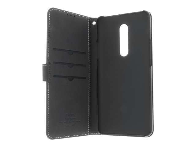 Insmat Exclusive Flip Case - Vikbart fodral för mobiltelefon - läder, polykarbonat - svart - för OnePlus 7 Pro