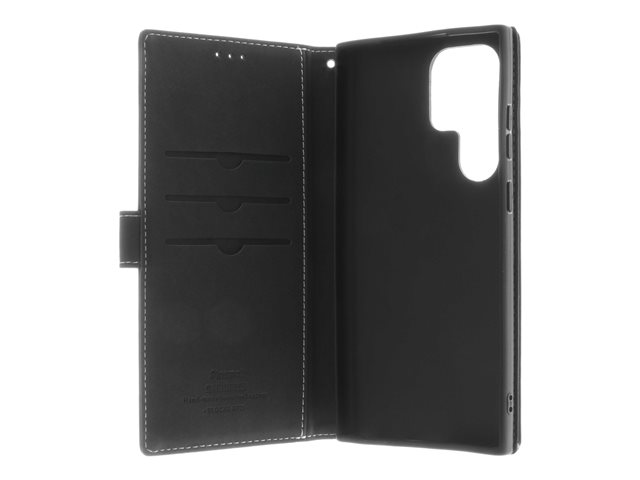 Insmat Exclusive - Vikbart fodral för mobiltelefon - genuint läder, papper, polyuretan, kartong, bomull, aluminiumfolie, brons, termoplastisk polyuretan (TPU) - svart - för Samsung Galaxy S23 Ultra 650-3137