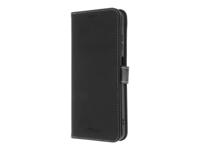 Insmat Exclusive - Vikbart fodral för mobiltelefon - genuint läder, termoplastisk polyuretan (TPU), kartong+papper+aluminiumfolie, bomullssömmar - svart - för Nokia G22