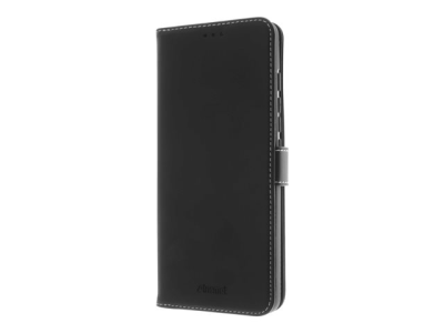Insmat Exclusive - Vikbart fodral för mobiltelefon - genuint läder, termoplastisk polyuretan (TPU), kartong+papper+aluminiumfolie, bomullssömmar - svart - för Motorola Moto G60s