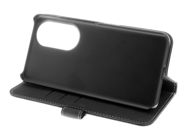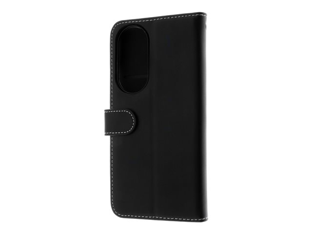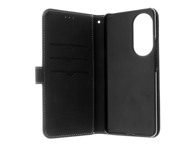Insmat - Vikbart fodral för mobiltelefon - genuint läder, bomullssömmar, bakre PC-plåt - svart - för Honor 90