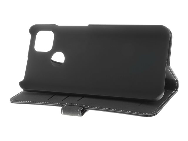 Insmat - Vikbart fodral för mobiltelefon - genuint läder, polykarbonat - svart - för Xiaomi Redmi 9C