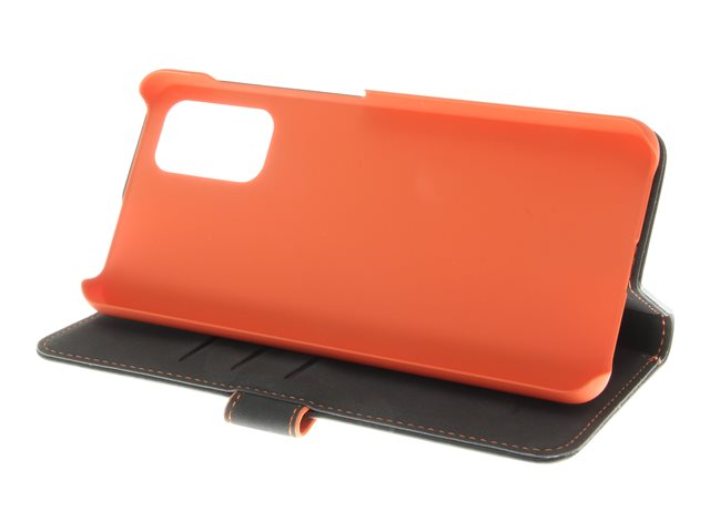 Insmat - Vikbart fodral för mobiltelefon - läder, kartong+papper+aluminiumfolie - svart, orange - för Samsung Galaxy A32 5G
